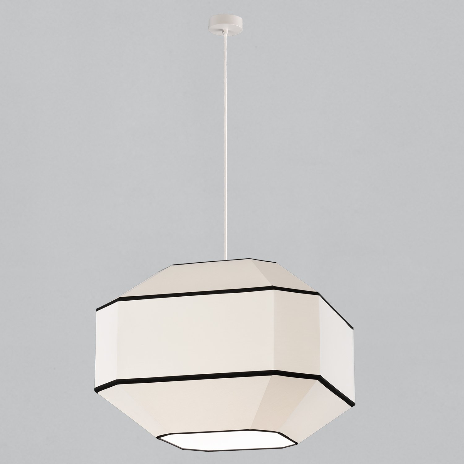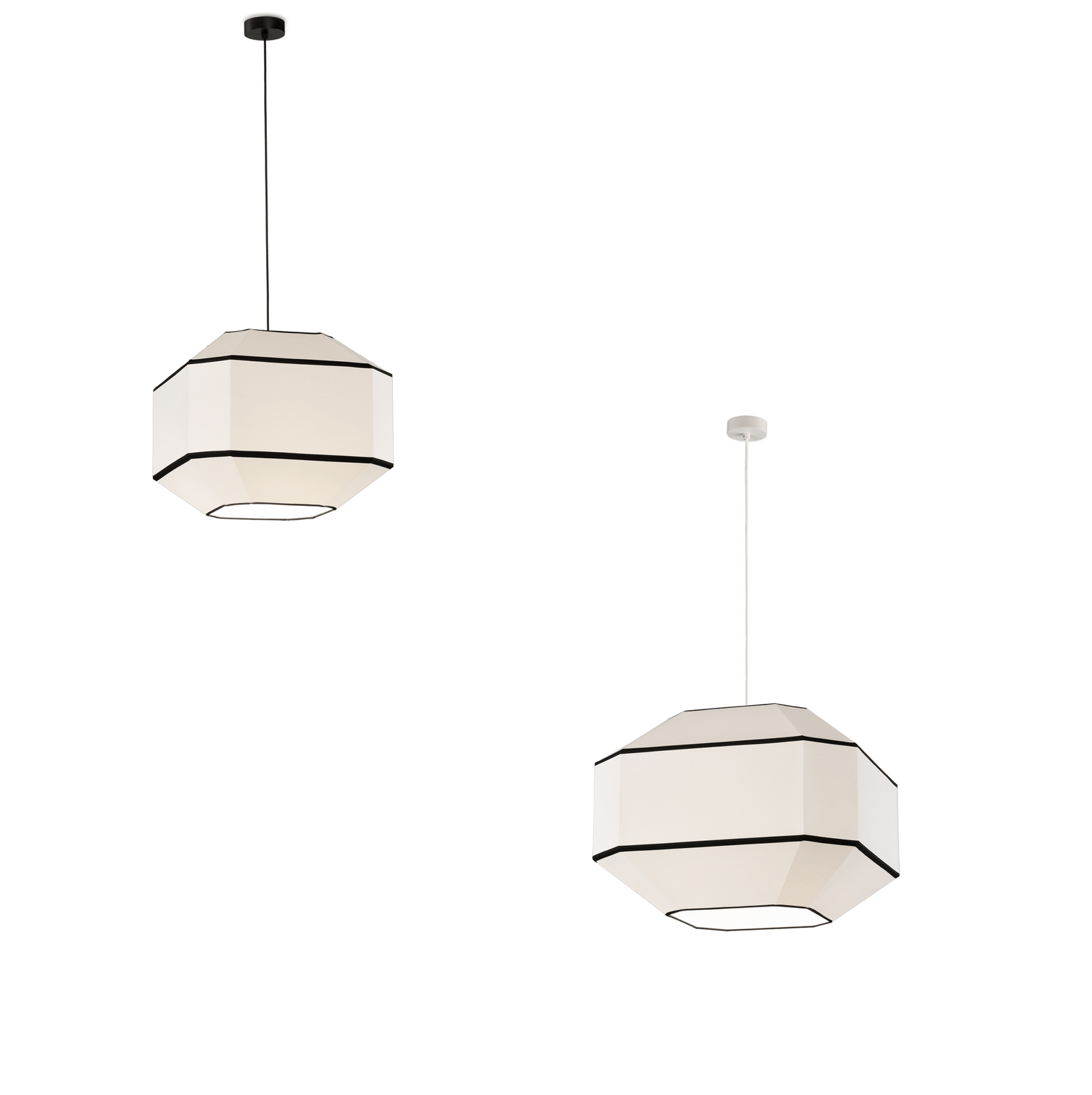 | Material e cor | Abajur em algodão branco com fitas pretas. De acordo com a referência selecionada: Kit de suspensão branca ou preta |