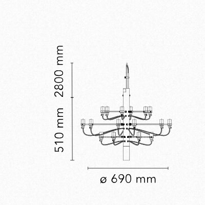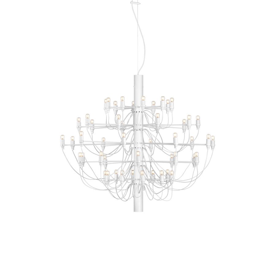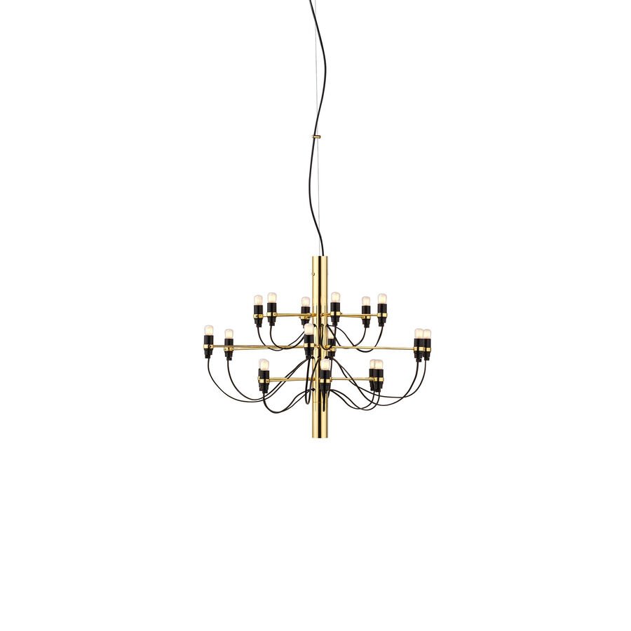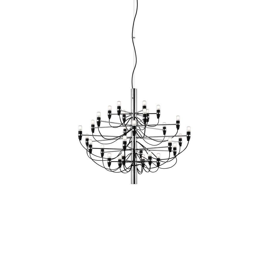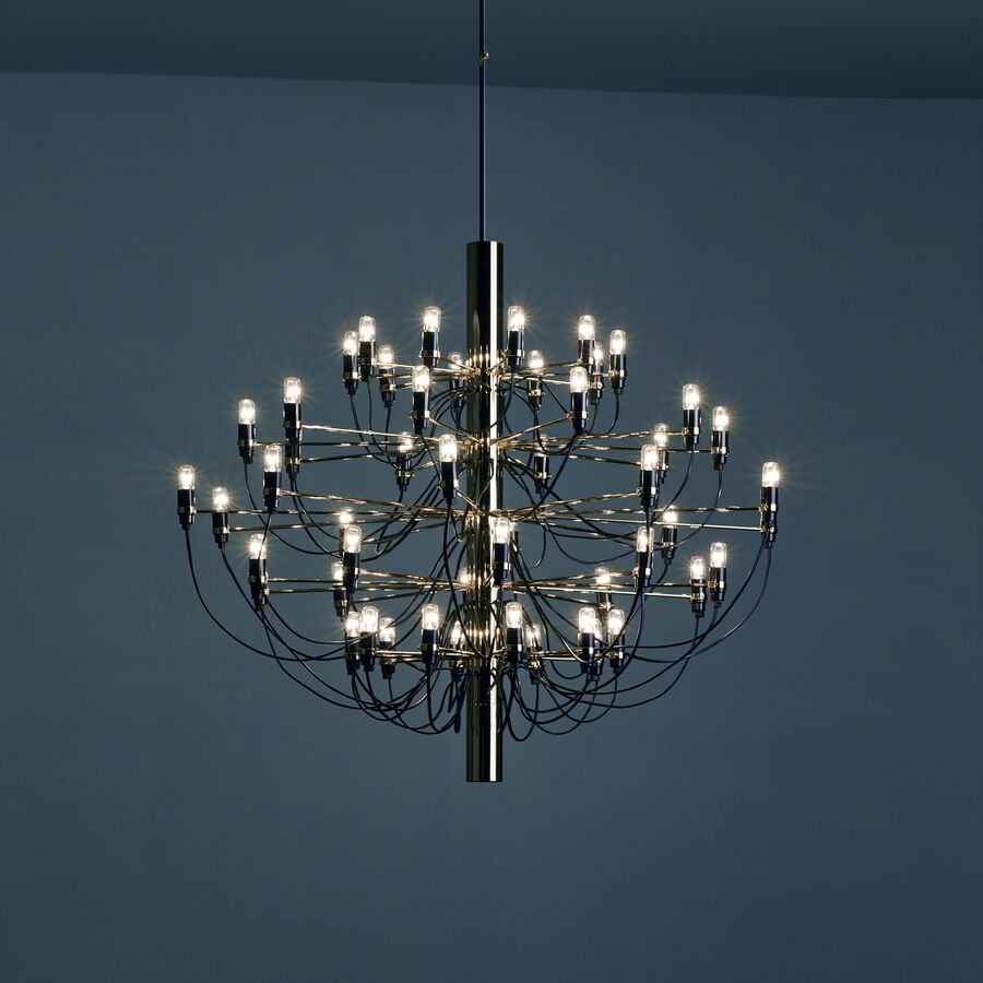 O Flos 2097 lustre tr. (lâmpadas transparentes) é, sem dúvida, um ícone do design de iluminação. Criado por Gino Sarfatti em 1958, este lustre conjuga estética industrial com uma composição perfeitamente equilibrada. Por isso, tornou-se uma escolha frequente em interiores sofisticados e projetos de arquitetura contemporânea.