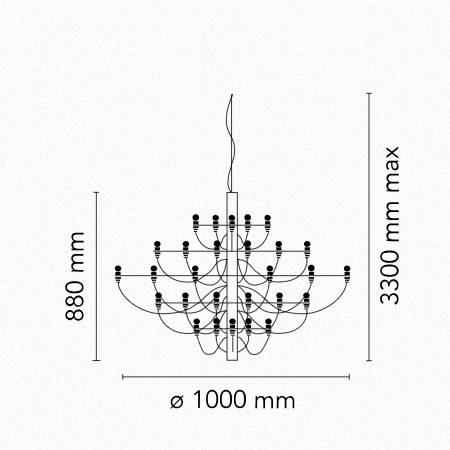 | Dimensões A máx. x Ø (cm) | Ver na galeria de imagens deste produto De acordo com a ref. selecionada (numero de lâmpadas): . 18 L – 280 X 69 . 30 L – 280 x 88 . 50 L – 330 x 100 |